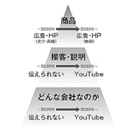 2020年以降、企業にとっても動画を使った情報伝達が十分に機能するようになりました。動画であれば、言葉や写真だけでは伝わりづらい、接客・サービスの雰囲気や、会社の空気感・信頼感のようなものも伝えることができます。さらには、従来文字と画像だけで説明していた商品内容も、動画のほうが伝わりやすくなります。