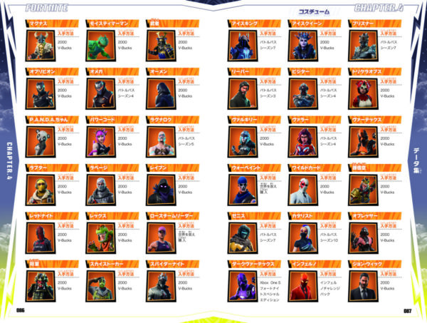 さらに、新登場アイテムを含むスキン・武器・装備・バックパック・グライダー・エモートなど、オールカラー図鑑5100種類以上掲載!