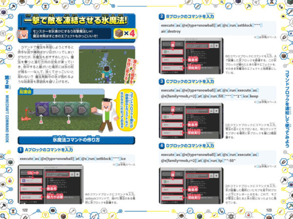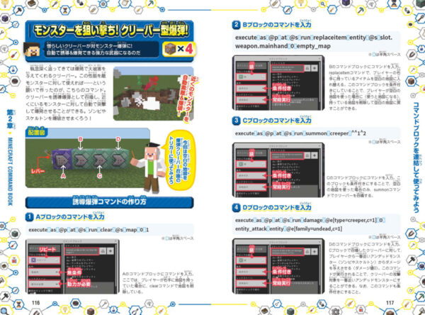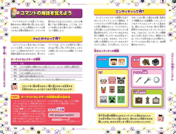 マインクラフトで今もっともアツい最強テクニック「コマンド」技の中から、すぐに作れる短いコマンドテクニックを大量に紹介する一冊! 楽しいワザ、おもしろワザ、スゴワザ、便利ワザがよく分かる!!