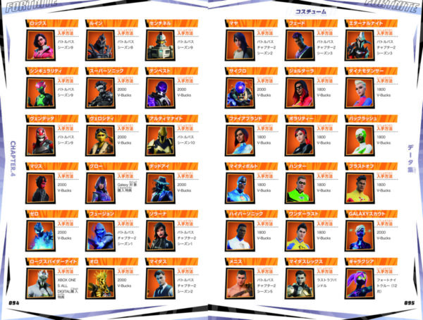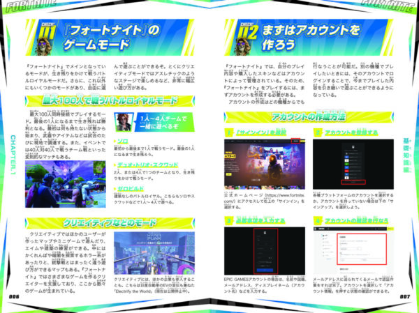バトルロイヤルの基本から必須テクニック、7-1で追加された新アクション、勝利につながる立ち回り方、勝利に結びつく建築の効率ワザまでバッチリ解説!! さらに、新登場アイテムを含むスキン・武器・装備・バックパック・グライダー・エモートなど、オールカラー図鑑4900種類以上掲載!