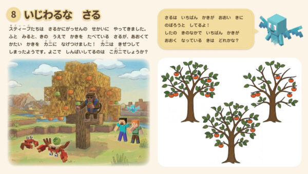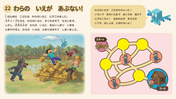 マインクラフトの世界を題材にした様々なパズル問題を楽しく解いていき、自然に理数系のセンスやプログラミング的思考力が身に付くパズル集です。