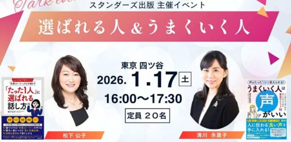 【イベント開催】2026年1月17日(土)「声」と「話し方」で「選ばれる人」&「うまくいく人」/松下公子・清川永里子
